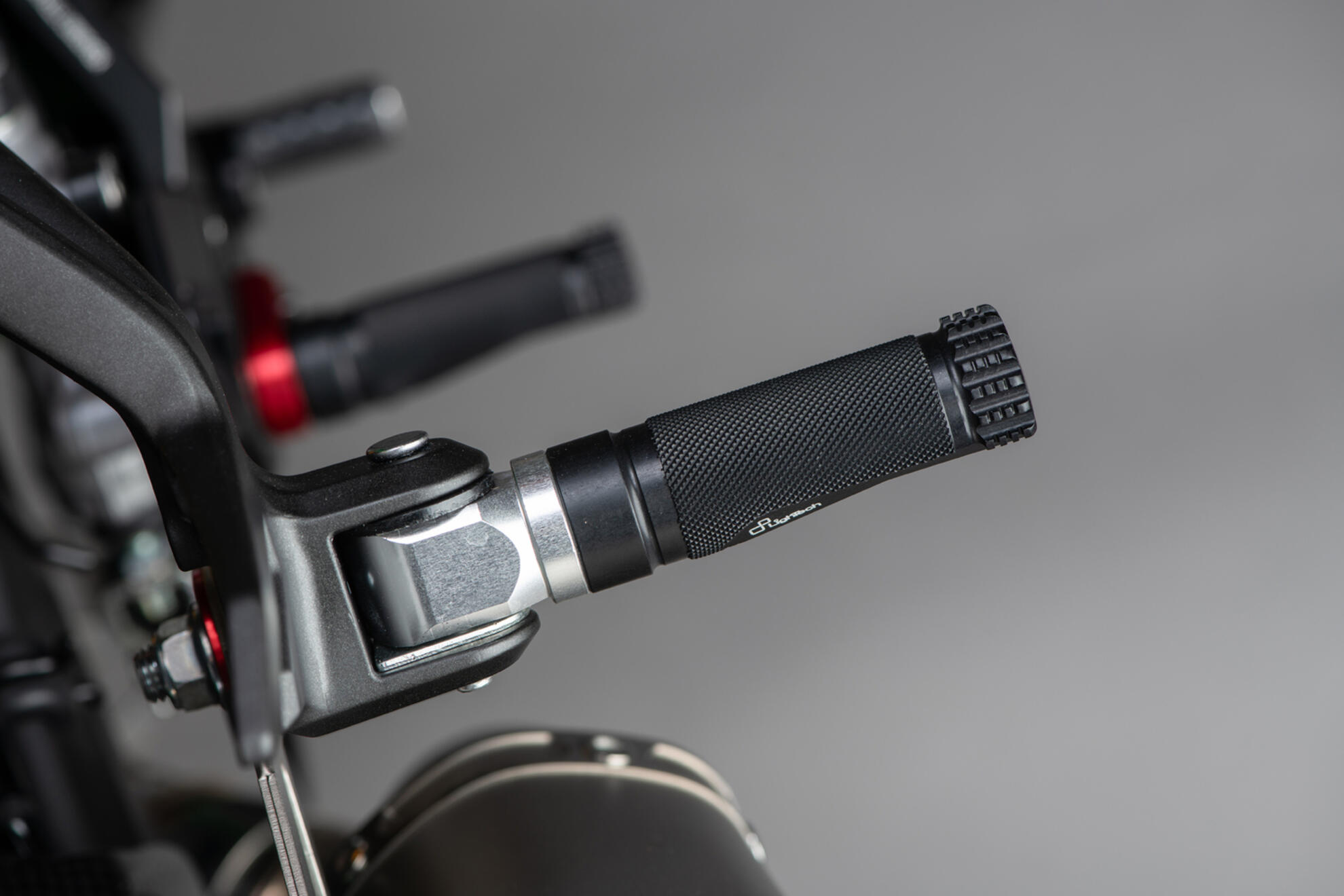 This fixed footpeg, crafted from high-strength Ergal 7075 aluminum alloy, is an optional accessory designed specifically for LighTech Track System rearsets. Compared to the standard model, it features an extended length of 75 mm (instead of 70.5 mm), providing an improved balance between comfort and control while riding.Available in two anodized finishes: black and silver.