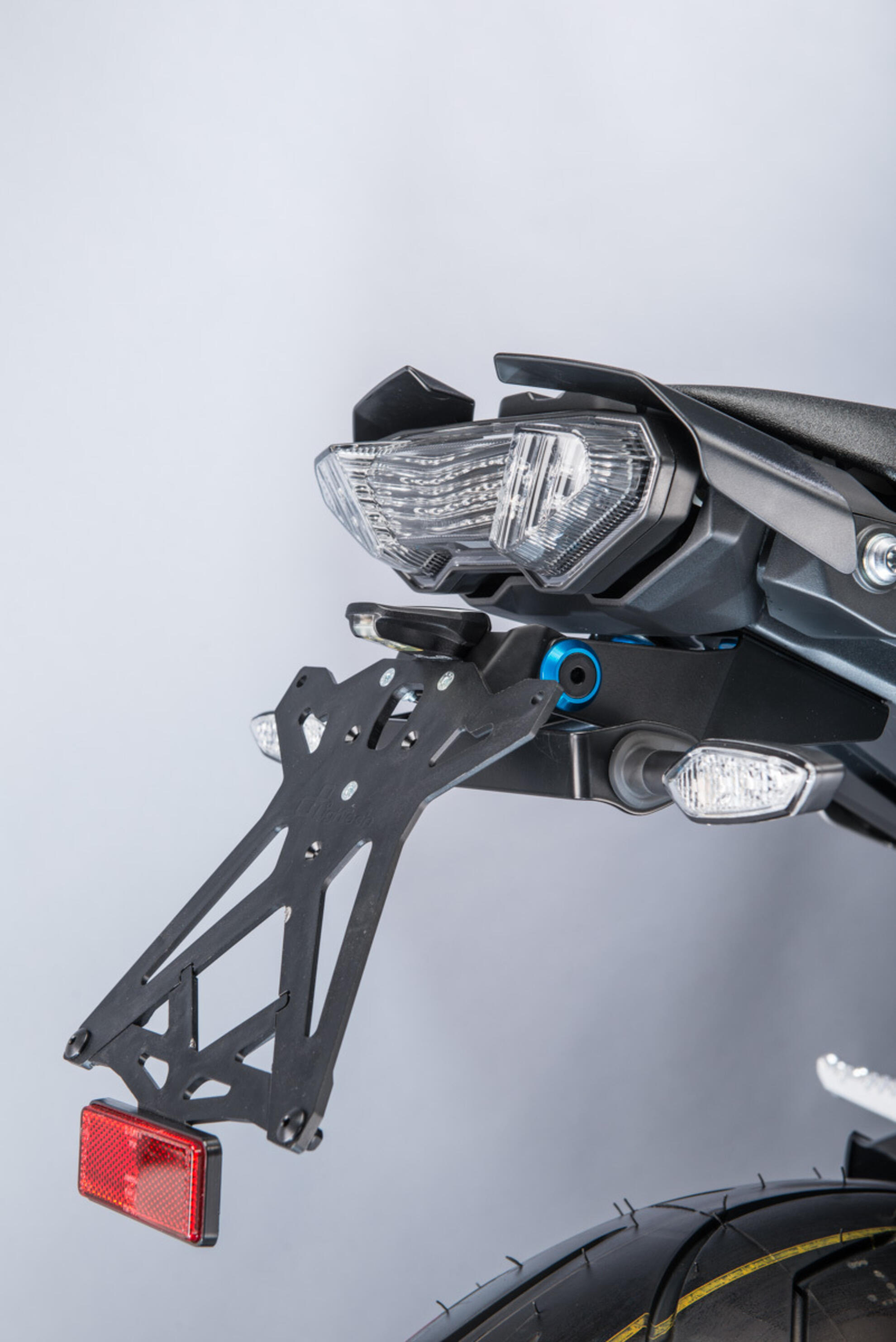 The license plate holder is probably one of the first products that is replaced immediately after purchasing your motorcycle. The Lightech license plate holder was developed in full compliance with the rules of the road code without forgetting to enhance it from an aesthetic point of view. The kit includes license plate light and reflector, both approved, and everything necessary for its correct installation. All license plate holders also have practical brackets to adjust the positioning of the indicators and the reflector. There are also 6 license plate supports available with different sizes and materials: the codes ending with A1-A2-A3 include license plate supports made of a special composite of carbon fiber and PA12 nylon which gives them resistance and sturdiness. Codes ending with B1-B2-B3 have an aluminum license plate support. Special brackets are inserted inside the package which allow the mounting of both original and aftermarket indicators. The code TAR009, optional screw kit consisting of a colored washer and fixing screw completes the customization of the motorbike.