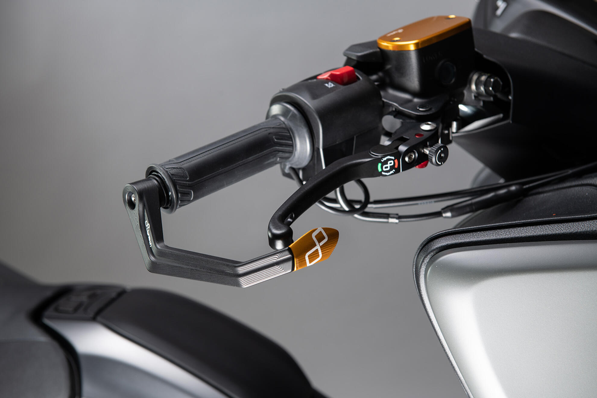 Prodotto interamente Made in Italy, ideato per aumentare la sicurezza del pilota in pista ma anche per uso stradale. In fase di frenata evita che la leva del freno possa venire schiacciata e, in caso di contatto, che venga bloccata la ruota anteriore. Il prodotto è composto completamente in alluminio, ad alta resistenza. Per una maggiore personalizzazione della moto è possibile scegliere il colore della parte finale serigrafata con il marchio LighTech inciso a laser. Il prodotto è molto ben rifinito, in particolar modo è possibile notare la minuziosa lavorazione tramite macchinari CNC. Viene venduto singolarmente ed è possibile ordinare anche solamente la parte finale colorata separatamente . ATTENZIONE: per poter applicare la protezione leva è assolutamente necessario ordinare anche il relativo adattatore. La lunghezza della leva è di 132 mm (distanza dal punto di fissaggio sull'estremità della barra al centro dell'estremità della leva). Deve essere montata sul lato destro della moto.