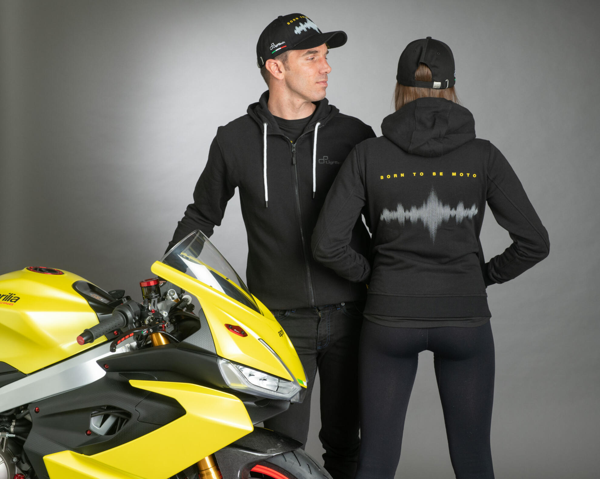 Oltre alla numerosa gamma di prodotti dedicati completamente al mondo delle moto LighTech offre ai suoi clienti la possibilità di acquistare alcuni capi d'abbigliamento dal design unico ed originale. Felpa con cappuccio su fondo nero con logo LighTech riportato in un quadratino giallo sulla parte anteriore e la scritta BORN TO BE MOTO sulla parte posteriore; materiale: 80% cotone e 20% poliestere. Taglie disponibili dalla XXS alla XXXL.