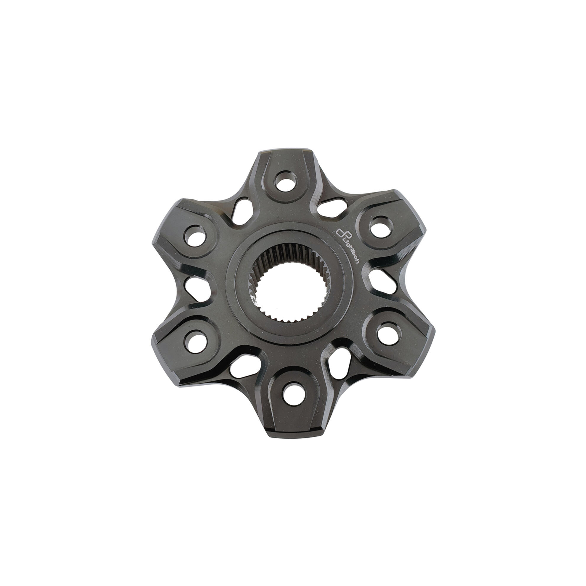 La flangia portacorona è un componente meccanico utilizzato nel sistema di trasmissione che serve a montare la corona dentata che trasmette potenza alle ruote. Le nostre flange portacorona sono realizzate in alluminio, per garantire robustezza e durabilità ma anche leggerezza (sono progettate infatti per resistere a carichi elevati e a sollecitazioni meccaniche). Il design garantisce un perfetto allineamento e accoppiamento con gli altri componenti della moto.