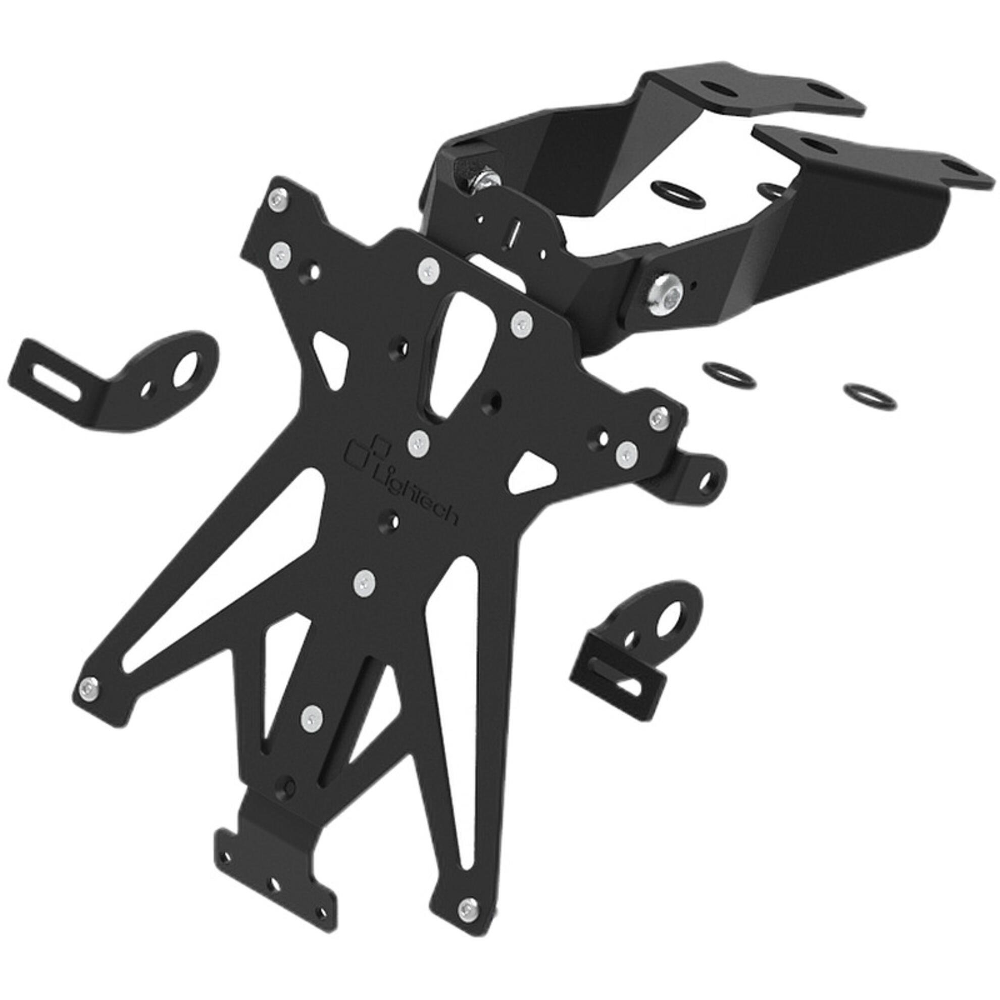 The license plate holder is probably one of the first products that is replaced immediately after purchasing your motorcycle. The Lightech license plate holder was developed in full compliance with the rules of the road code without forgetting to enhance it from an aesthetic point of view. This license plate holder does NOT include license plate light and reflector but includes everything necessary for its correct installation. All license plate holders also have practical brackets to adjust the positioning of the indicators and the reflector. There are also 6 license plate supports available with different sizes and materials: the codes ending with A1-A2-A3 include license plate supports made of a special composite of carbon fiber and PA12 nylon which gives them resistance and sturdiness. Codes ending with B1-B2-B3 have an aluminum license plate support. Special brackets are inserted inside the package which allow the mounting of aftermarket indicators. The code TAR009, optional screw kit consisting of a colored washer and fixing screw completes the customization of the motorbike.