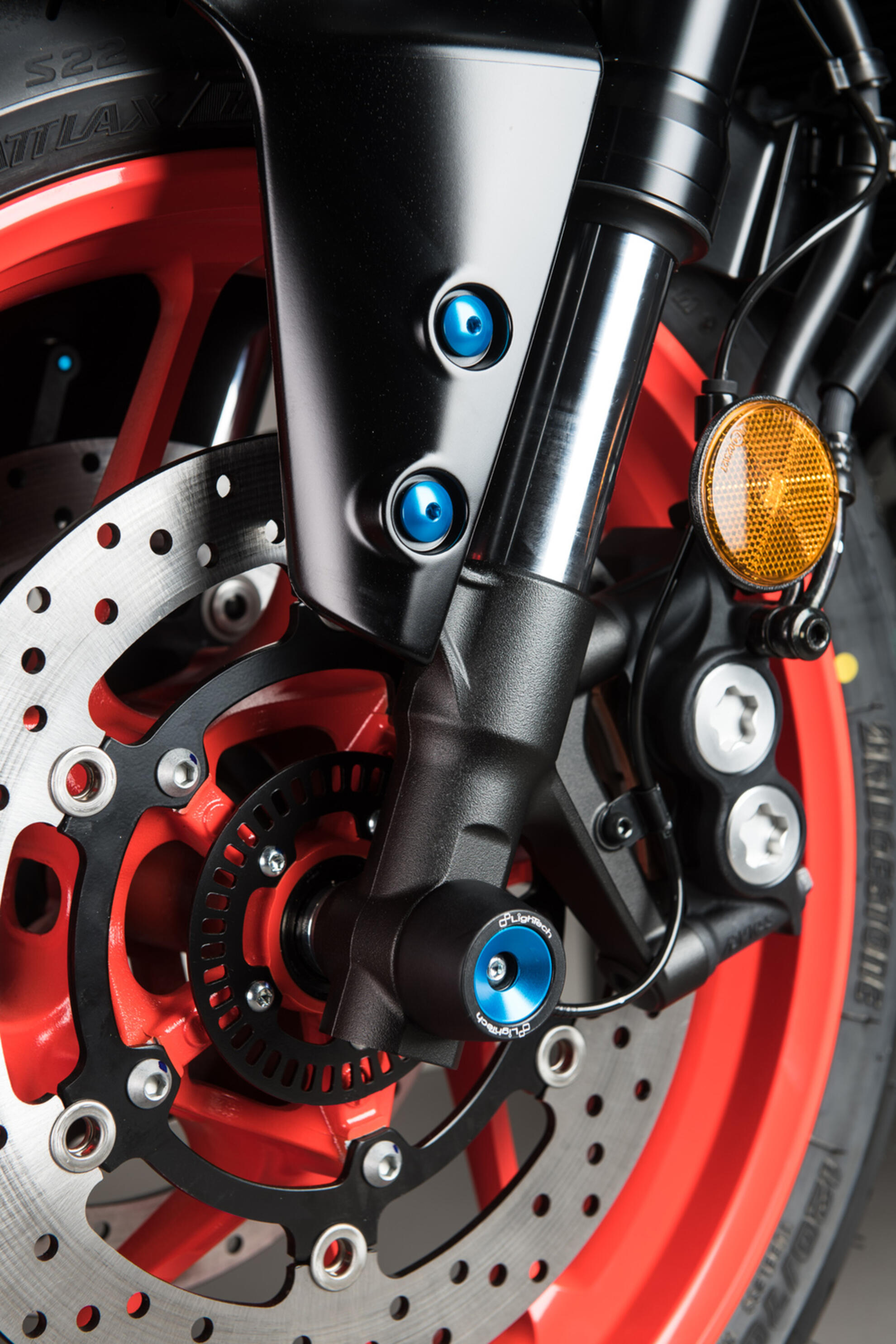 To make your motorbike even more personalized, LighTech offers a wide choice of accessories and spare parts for wheel axle protectors. Lightech wheel axle protectors are made to better protect the motorbike in the event of a fall; the black external body, screen-printed with the Lightech logo, is made of nylon, a material with high elasticity that allows for greater resistance to impacts, and a colored Ergal insert, a material known for its resistance but also for its lightness. It is possible to purchase the colored internal spare part separately (sold in pairs) to create dedicated color combinations. This wheel axle protector model fits on the front and rear of the motorcycle.