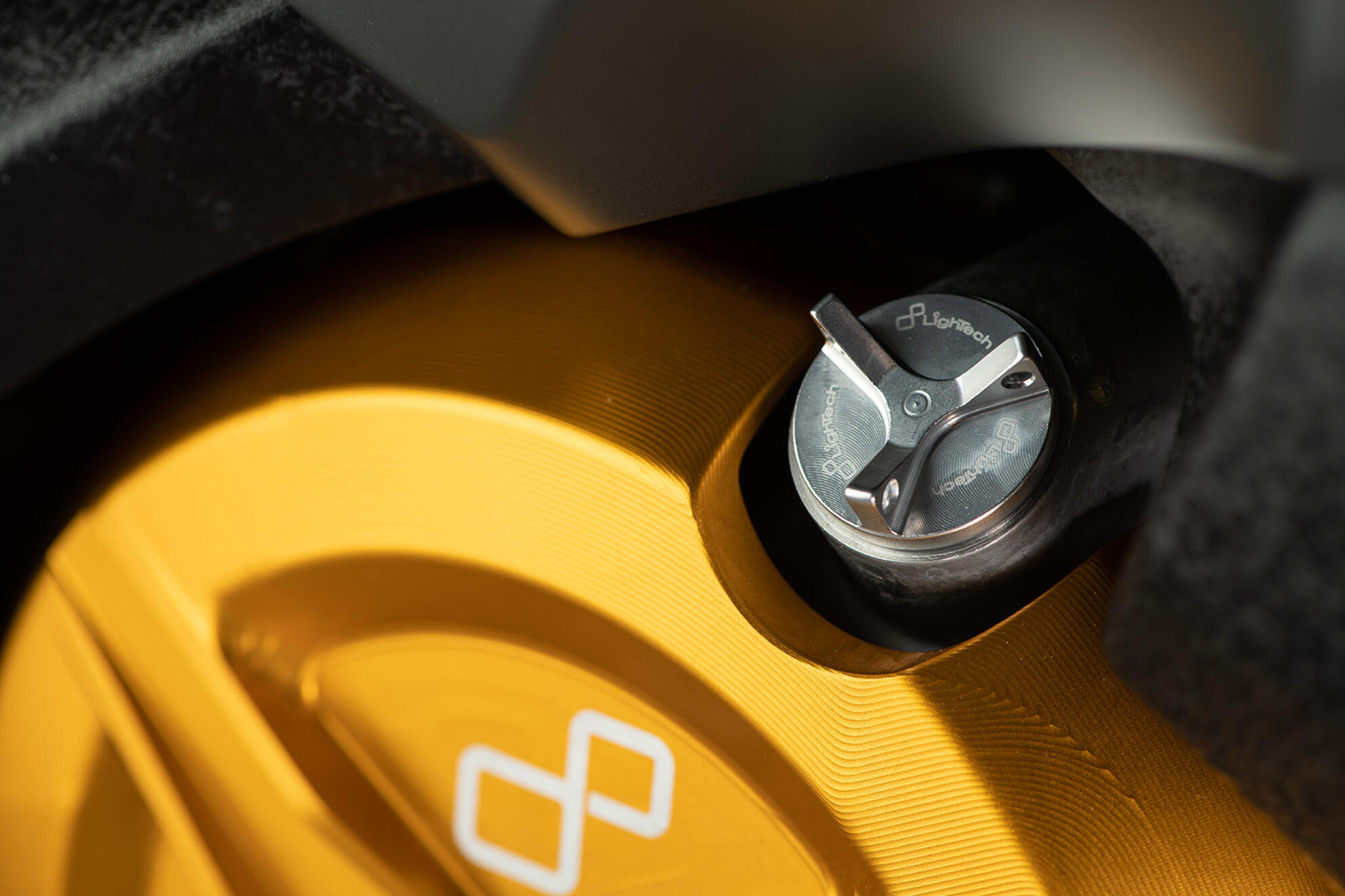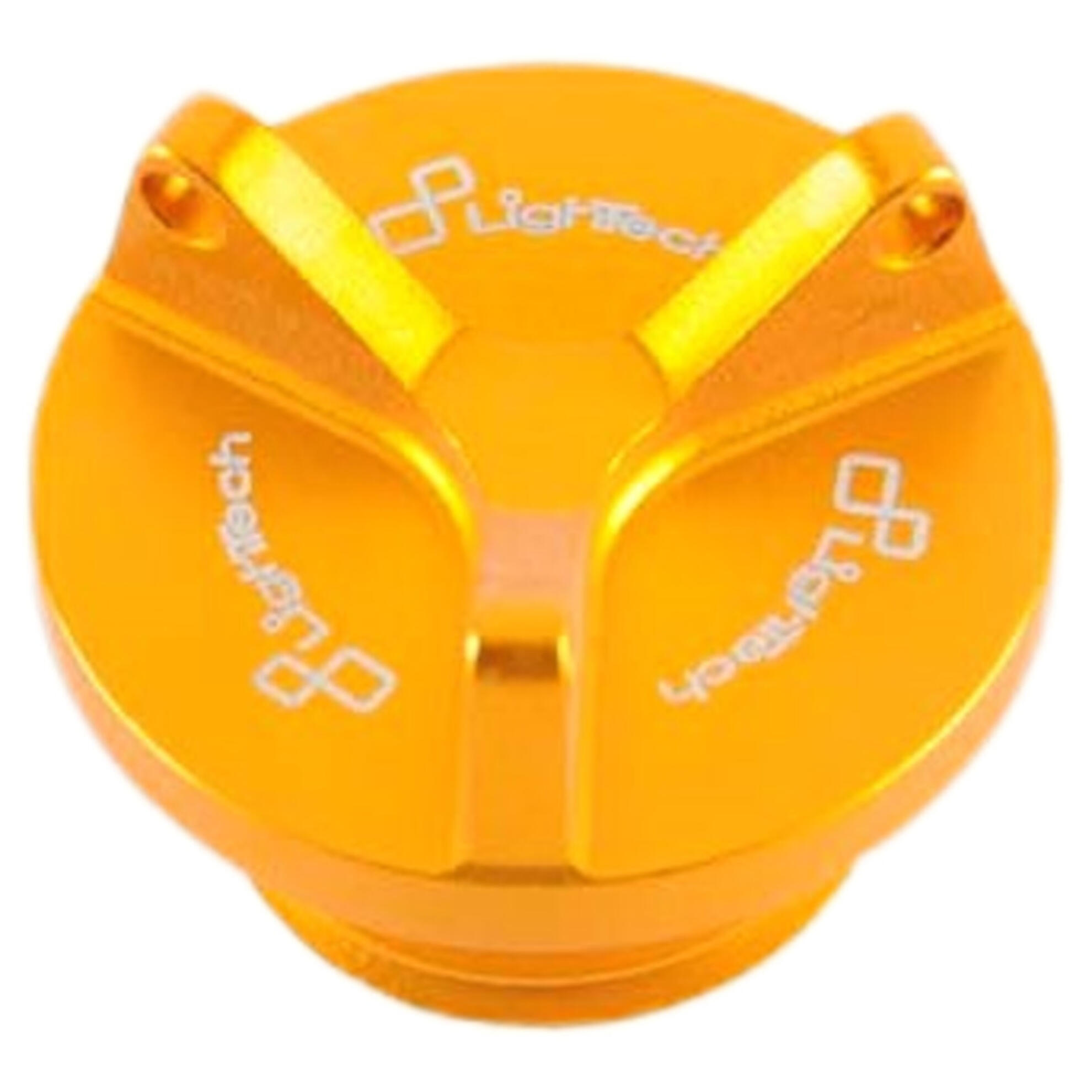 Per personalizzare al massimo il proprio modello di moto, LighTech propone una vasta gamma di tappi olio, interamente realizzati in Ergal. Questa particolare lega di alluminio rende il prodotto molto resistente nel tempo ma anche molto leggero. Sono interamente ricavati dal pieno e la lavorazione tramite macchinari CNC rende il montaggio del prodotto preciso e sicuro. Hanno un'ottima resa in quanto si integrano perfettamente al design di molti modelli di moto. L'installazione risulta molto facile in quanto è sufficente sostituire il tappo olio originale. Troviamo su ogni tappo olio il logo LighTech inciso a laser per una maggiore autenticità del prodotto. Per poterli fissare comodamente al telaio in caso di utilizzo in pista LighTech ha ideato un design esclusivo con 3 fori. Questo modello di tappo in particolare misura M19,5X2,5.