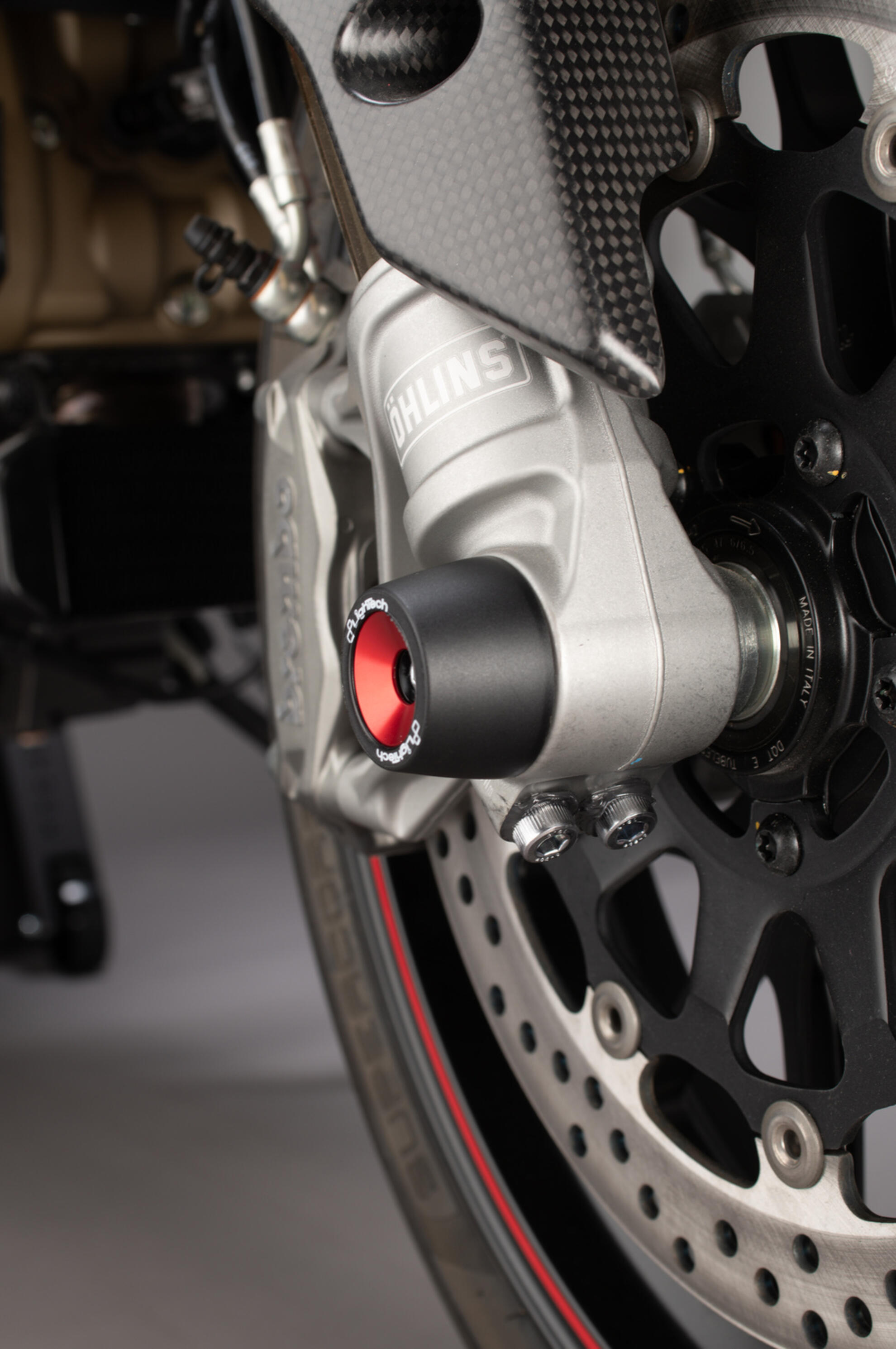 Per rendere la vostra moto ancora più personalizzata, LighTech propone un'ampia scelta di accessori e ricambi per le protezioni perno ruota. Le protezioni perno ruota Lightech vengono realizzate per proteggere maggiormente la moto in caso di caduta; il corpo esterno nero, serigrafato con logo Lightech, è composto in nylon, materiale con un'elevata elasticità che permette una maggiore resistenza agli urti, e da un inserto in Ergal colorato, materiale conosciuto per la proprio resistenza ma anche per la propria leggerezza. E' possibile acquistare separatamente il ricambio interno colorato (venduto a coppia) per creare combinazioni di colori dedicate. Questo modello di protezione perno ruota monta sulla parte anteriore della moto.