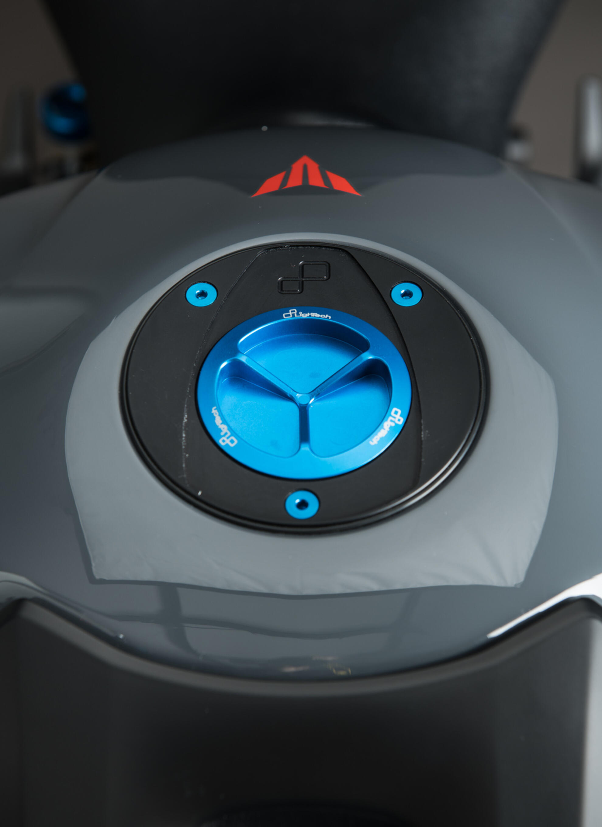 I tappi serbatoio a vite LighTech si distinguono per la loro leggerezza rispetto agli originali e per la loro praticità di installazione sulla moto. Sono realizzati in alluminio, materiale che combina insieme due caratteristiche fondamentali per il pilota: la resistenza nel tempo e la leggerezza. Vengono prodotti tramite lavorazione con macchinari CNC all'avanguardia conferendo al prodotto uno stile unico. Il loro sistema di chiusura a vite permette di aprire e chiudere il tappo in maniera molto semplice ed intuitiva. La parte esterna viene anodizzata in nero mentre la parte interna è colorata. I tappi serbatoio Lightech sono 100% Made in Italy. Ogni tappo viene fornito completo di viti e guarnizioni per il montaggio.