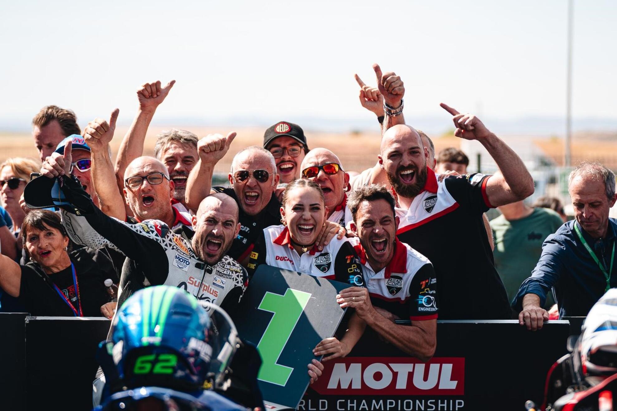 «Sono felicissimo! Vincere la mia prima gara in WorldSSP è un’emozione indescrivibile, e farlo con questo team lo rende ancora più speciale. Mi sono sentito forte fin dal warm up e in gara ho dato tutto. È stato bellissimo lottare fino all’ultima curva e riuscire a portare a casa questa vittoria. Grazie alla squadra per il supporto continuo. Domani voglio riprovarci!»