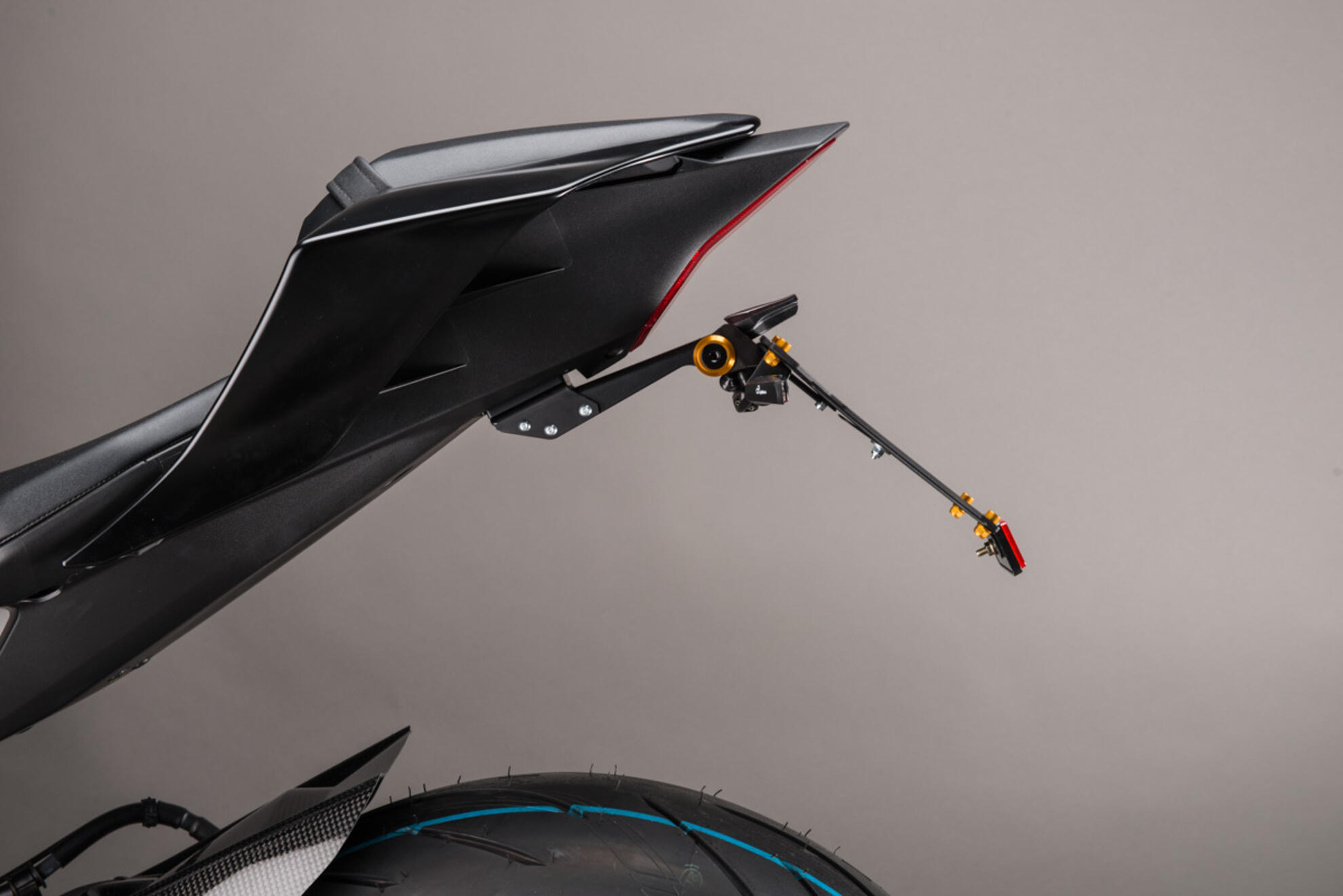 Il supporto portatarga è disponibile in diverse misure: vedi l' immagine "TABELLA DIMENSIONI SUPPORTI PORTATARGA" per verificare la compatibilità con la tua moto.
