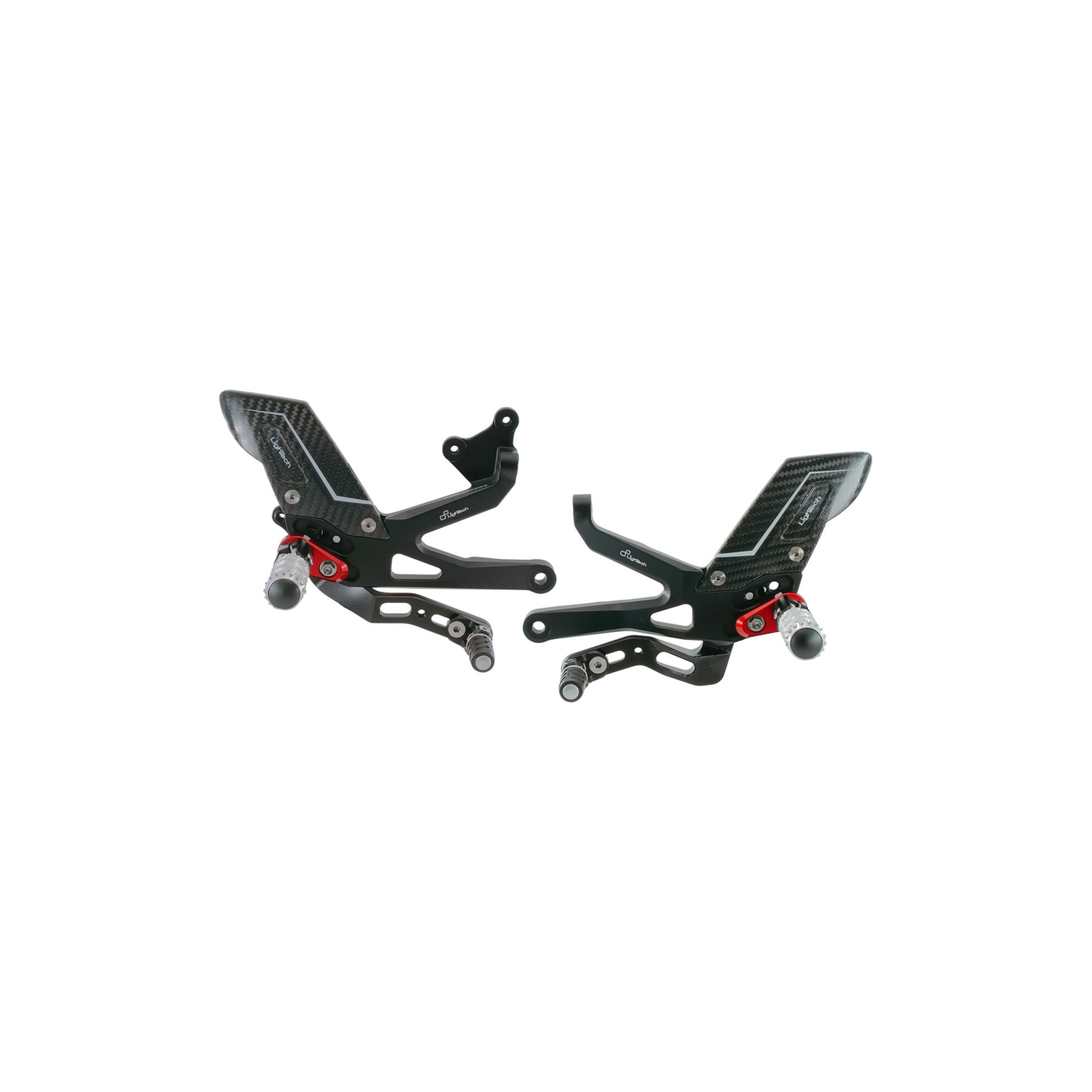 Le pedane Lightech sono realizzate in Ergal 7075-T6 ricavate dal pieno. Il supporto principale è costituito da un unico blocco, ne consegue una struttura più resistente e un'eccezionale rigidità che trasmette al pilota un maggior feeling di guida.