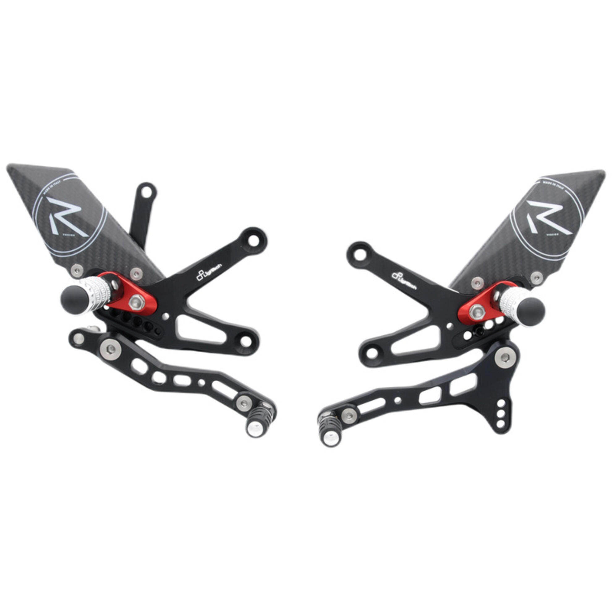 Le pedane Lightech sono realizzate in Ergal 7075-T6 ricavate dal pieno. Il supporto principale è costituito da un unico blocco, ne consegue una struttura più resistente e un'eccezionale rigidità che trasmette al pilota un maggior feeling di guida.