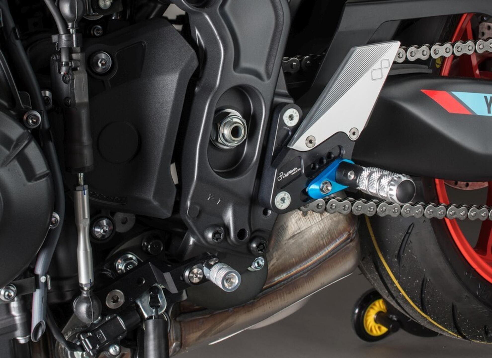 Le pedane Lightech sono realizzate in Ergal 7075-T6 ricavate dal pieno. Il supporto principale è costituito da un unico blocco, ne consegue una struttura più resistente e un'eccezionale rigidità che trasmette al pilota un maggior feeling di guida.